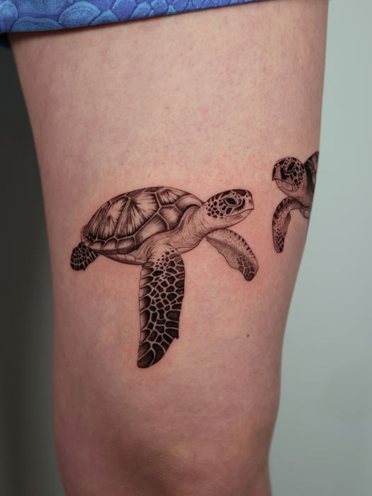In 2019, Ashley found her way back through permanent makeup, where she developed her precision and technical skills. That eventually led her to tattooing, and in 2021 she began a tattoo apprenticeship. Now, with just about four years of experience, Ashley specializes in fineline, microrealism, and ornamental designs—transforming simple ideas into detailed, refined tattoos that highlight both skill and artistry.